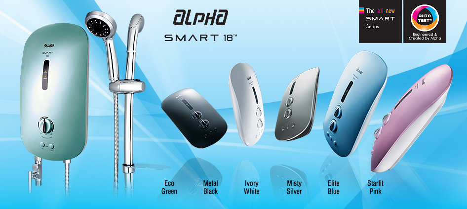 Technology is constantly evolving, becoming more and more "intelligent" to anticipate our needs. Presenting the next generation of shower heater with a built-in intelligent feature...the Alpha SMART series. SMART is the first ever Instant Shower Heater with an on board microchip that incorporates an advance program to monitor the safety status and performance level even before the system is activated, as well as during usage. The interlligent Auto Test safety feature provides all-round protection and peace-of mind every time you step into the shower.